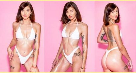Tattoos : Script on right flank (under right breast); Chinese characters on right side of abdomen; Script on left side of abdomen; Under left biceps; Inside left forearm; Wings on each side of back; Script on right thigh