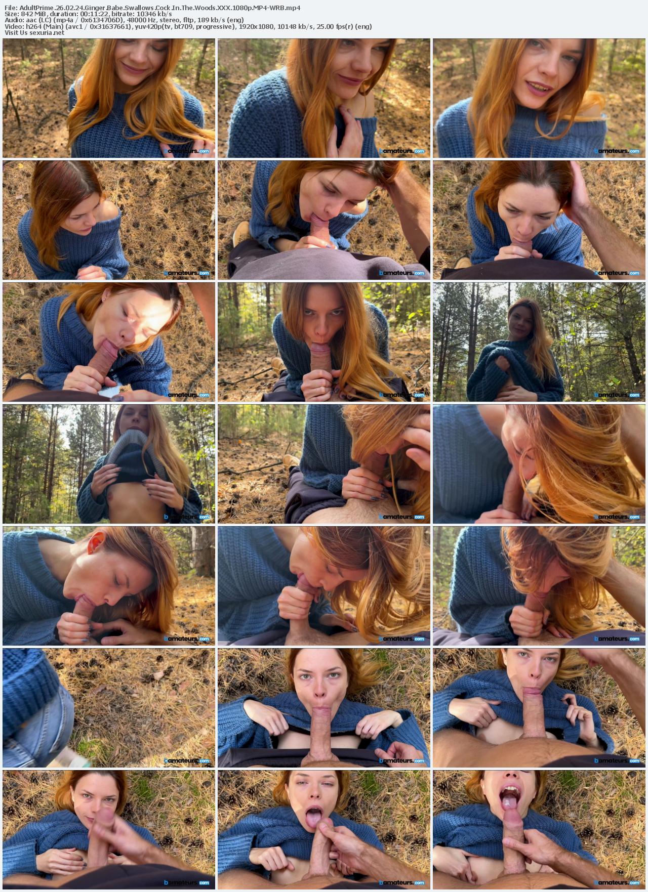 Gorgeous redhead lies back on a bed of pine needles in the woods, cozy blue sweater pulled up, jeans unbuttoned and shoved down just enough to show her tight body. Her long ginger hair fans out as she looks up at the camera with hungry eyes, mouth wide open, tongue out flat. In POV she takes the thick cock deep down her throat, gagging and slurping loudly while her small natural tits push against the soft wool. She bobs her head fast, drool running down her chin, moaning like a needy slut as she deepthroats every inch. The guy fucks her face harder until he pulls out and blasts thick ropes of hot cum all over her pretty freckled face—splattering her cheeks, lips, and tongue. She licks it up slow, smiling like the filthy outdoor cumslut she is.